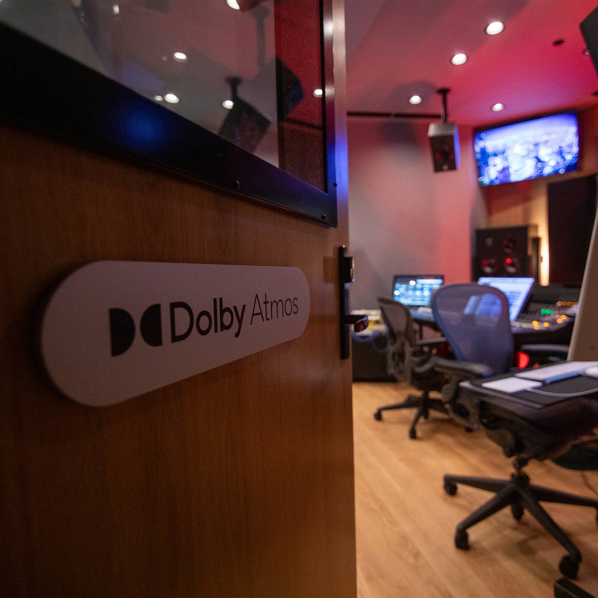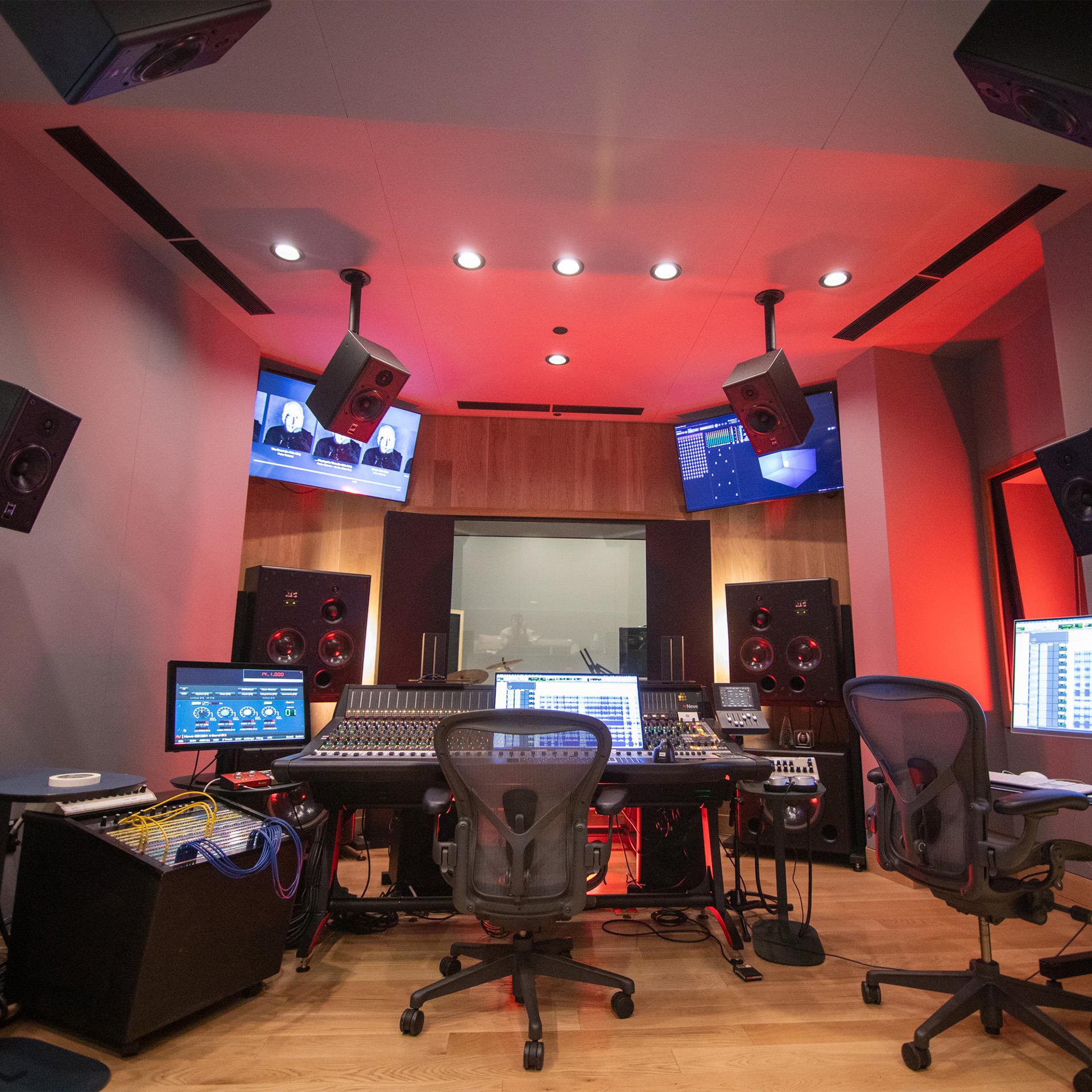 The monitoring system features a 7.1.4 ATC speaker array, enabling both stereo and Dolby Atmos immersive mixing. Additional nearfield monitoring options are available upon request.