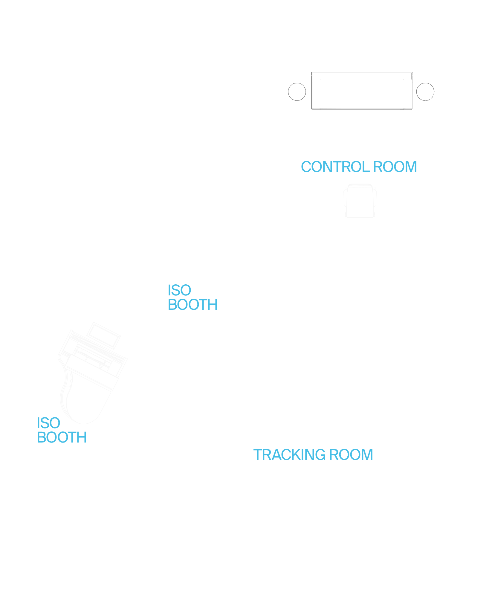 The studio is designed as a multi-use media production facility: a music recording studio, equipped for tracking sessions, overdub applications ranging from single instruments to medium-sized ensembles, stereo and immersive mixing, and live recording; as well as a soundstage for audio/visual content production, including video and photo shoots, promotional liner sessions, media interviews, and livestream events.